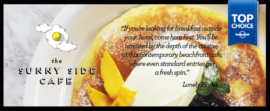 Walk along the beach path in the direction of Station 3. If you're coming from D'Mall, walk south. The Sunny Side Cafe is just a few steps away from Astoria Current.